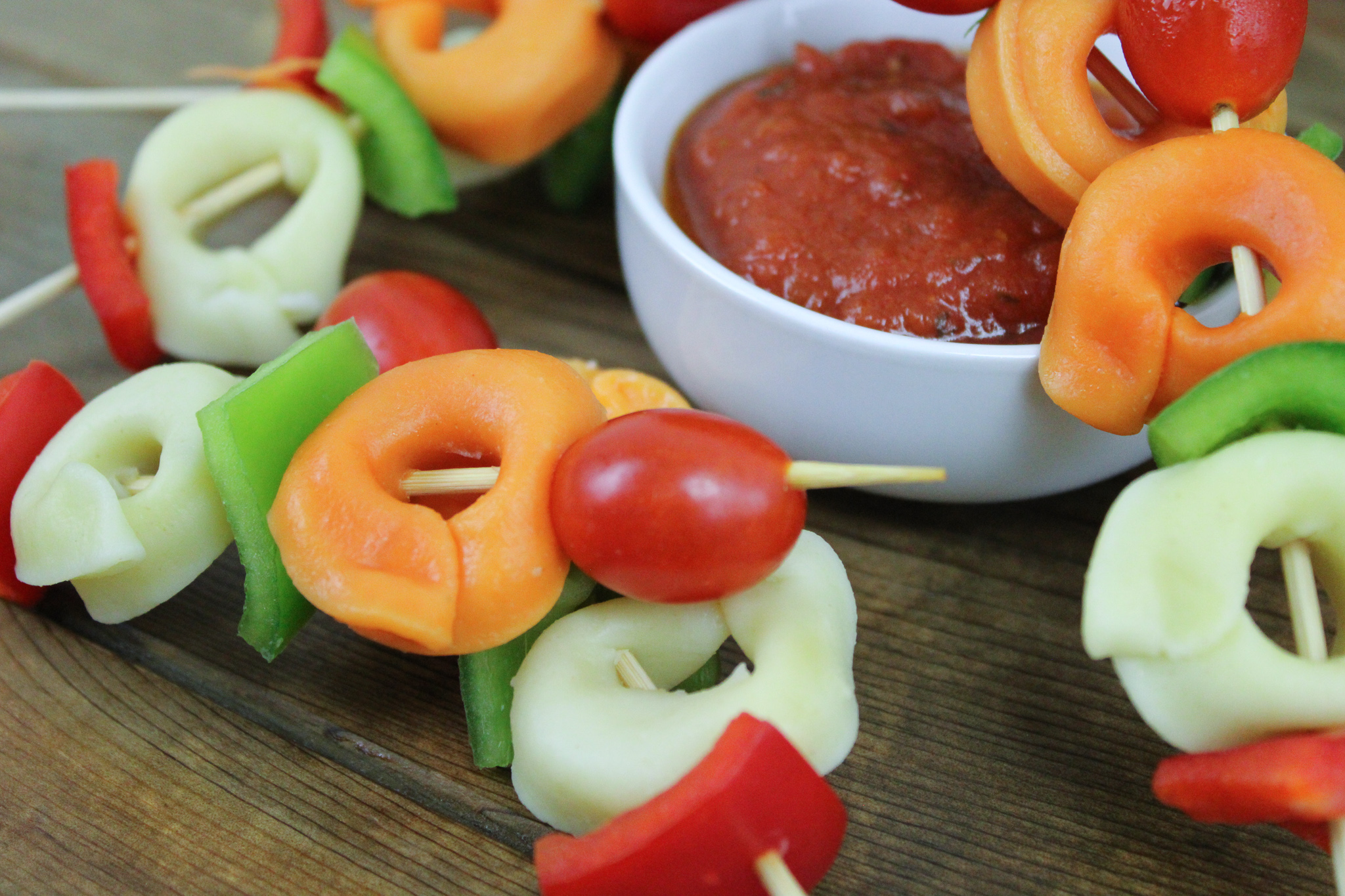 Tortellini Skewers with Marinara Sauce