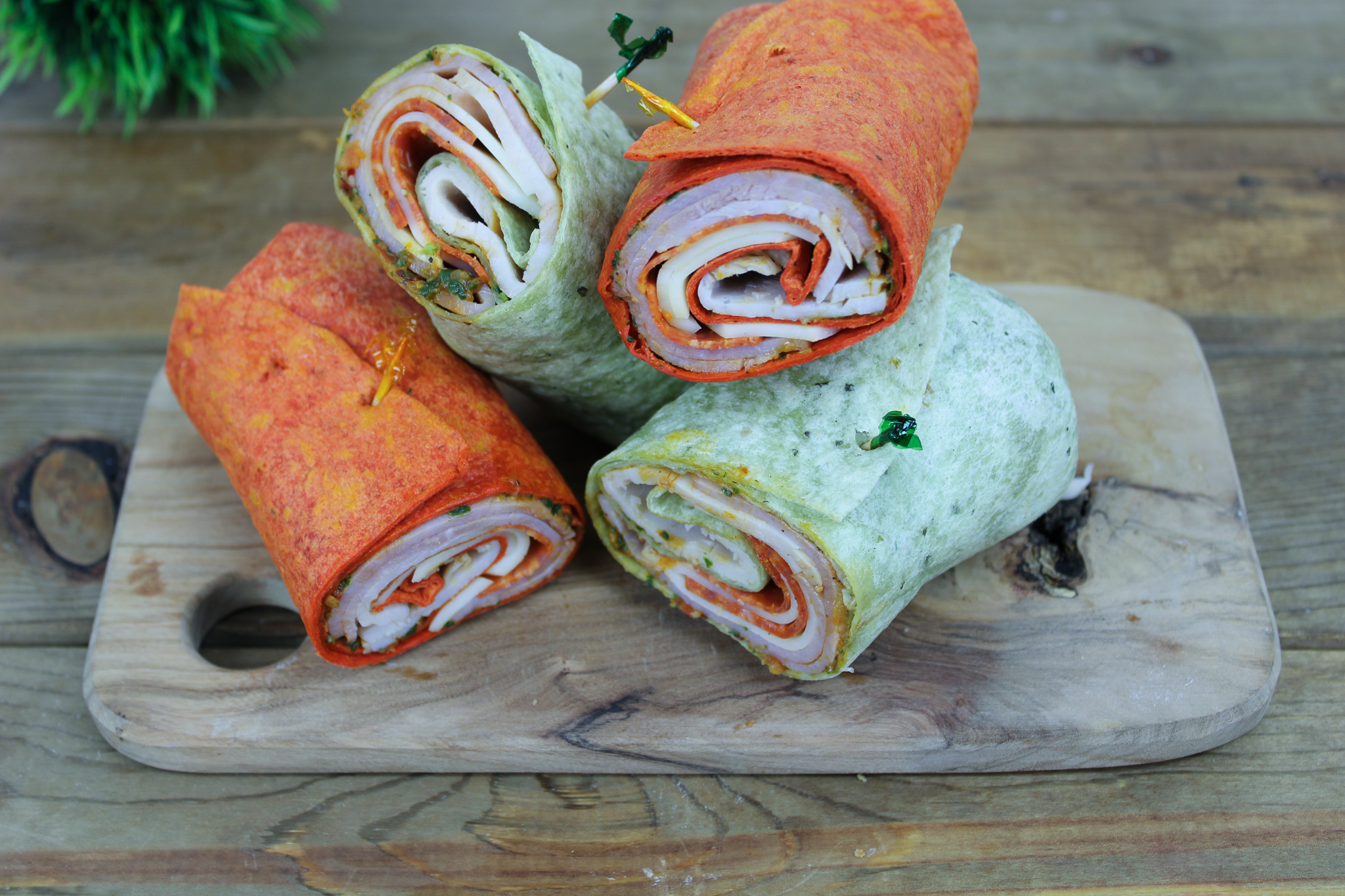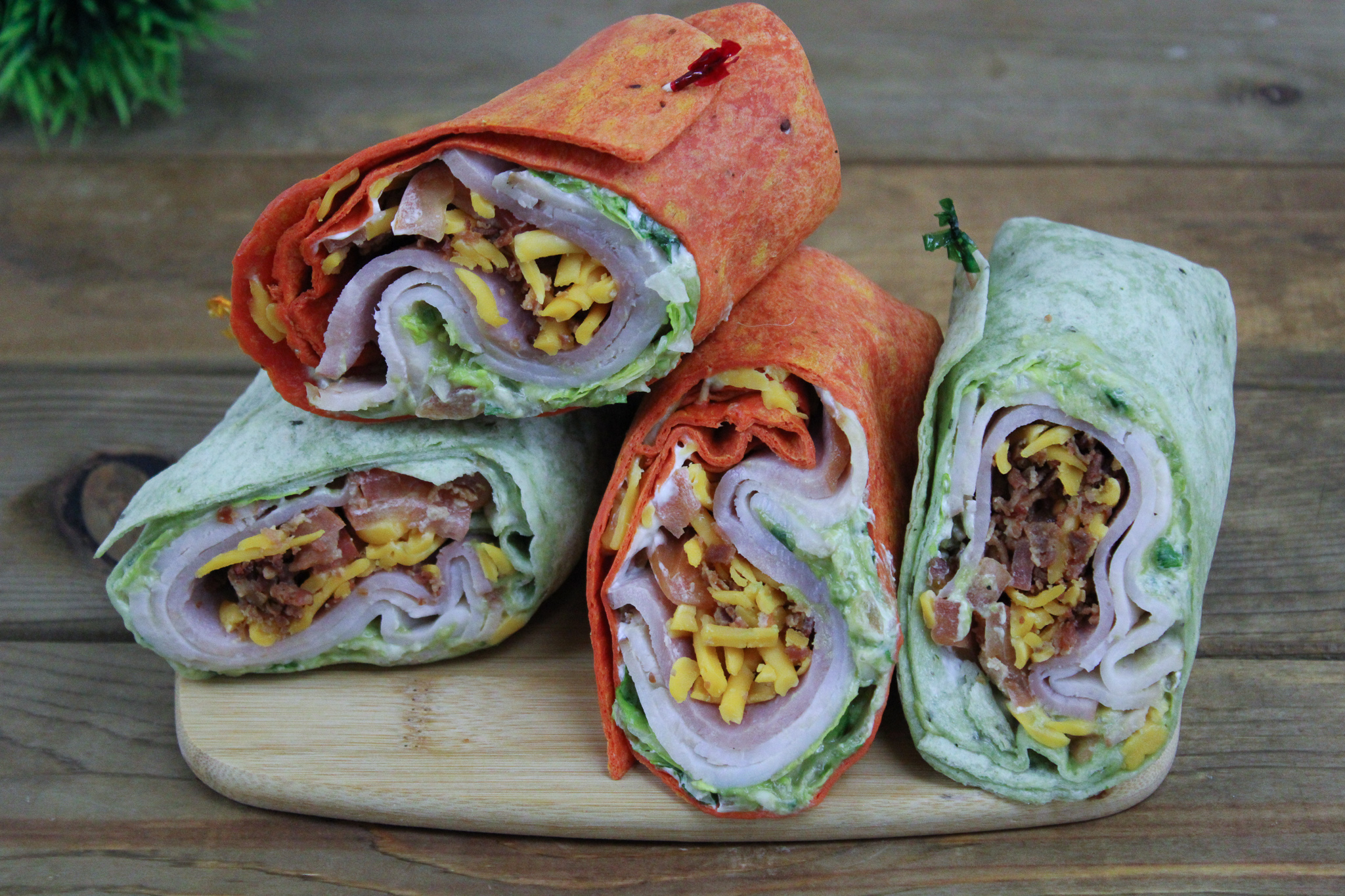 Roasted Turkey Breast, Smoked Ham, Pepperoni, Provolone Cheese, Basil Pesto & a Diced Tomato Blend in a Flour Tortilla