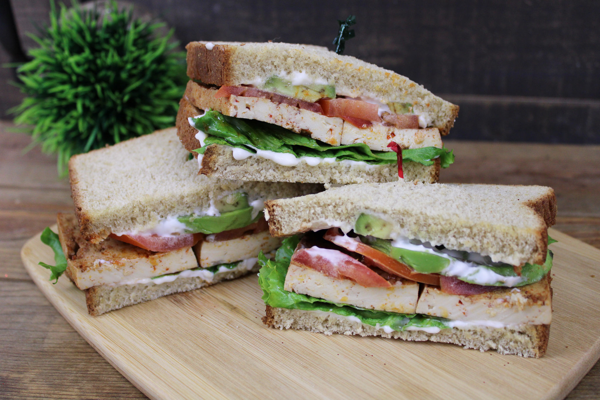 Marinated tofu, lettuce, avocado and tomato – the perfect vegan sandwich with a spin on the traditional B.L.T.!
