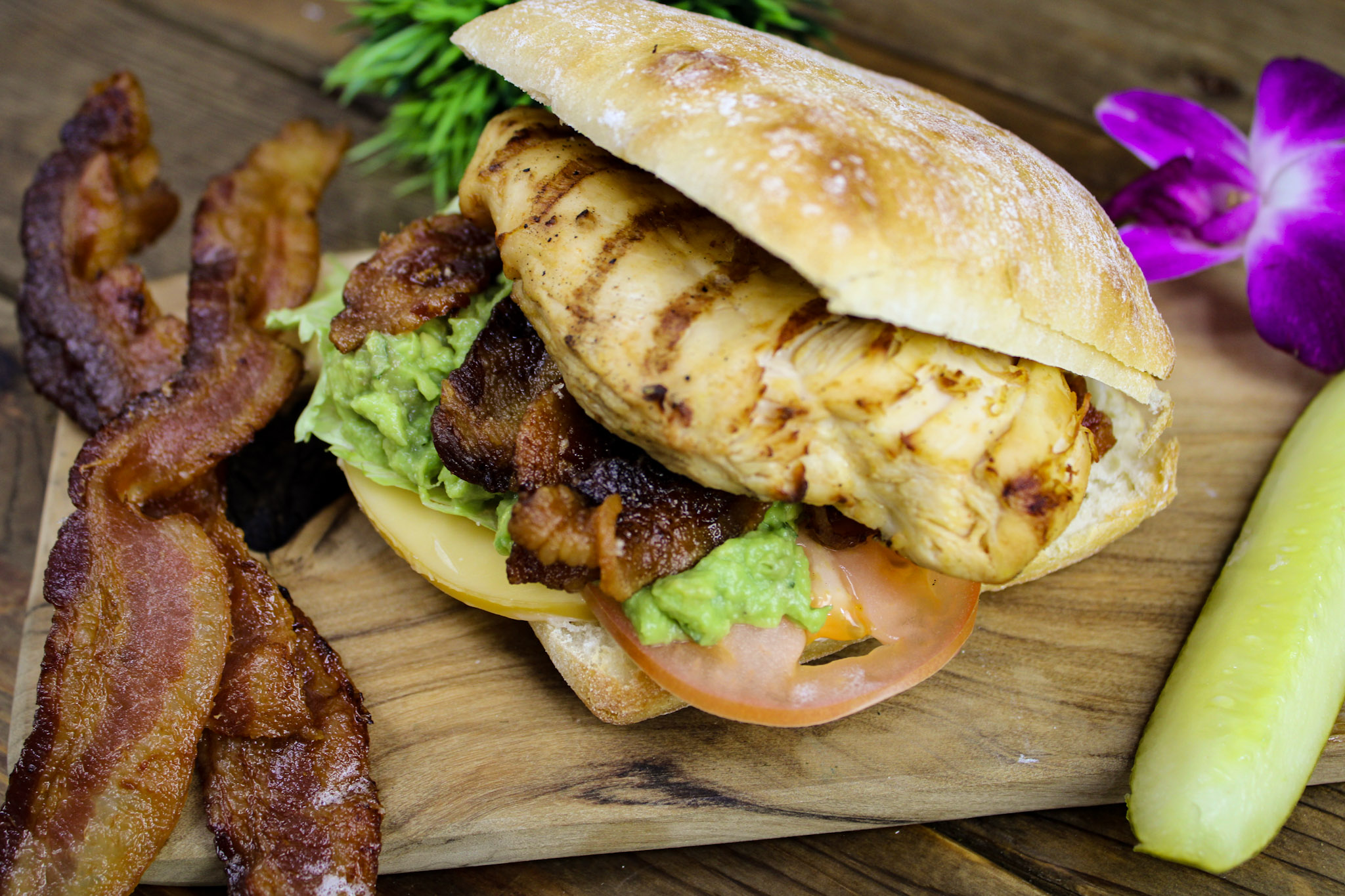 Chicken breast, avocado, bacon, tomato & house-made Chipotle Ranch Dressing on a butter croissant